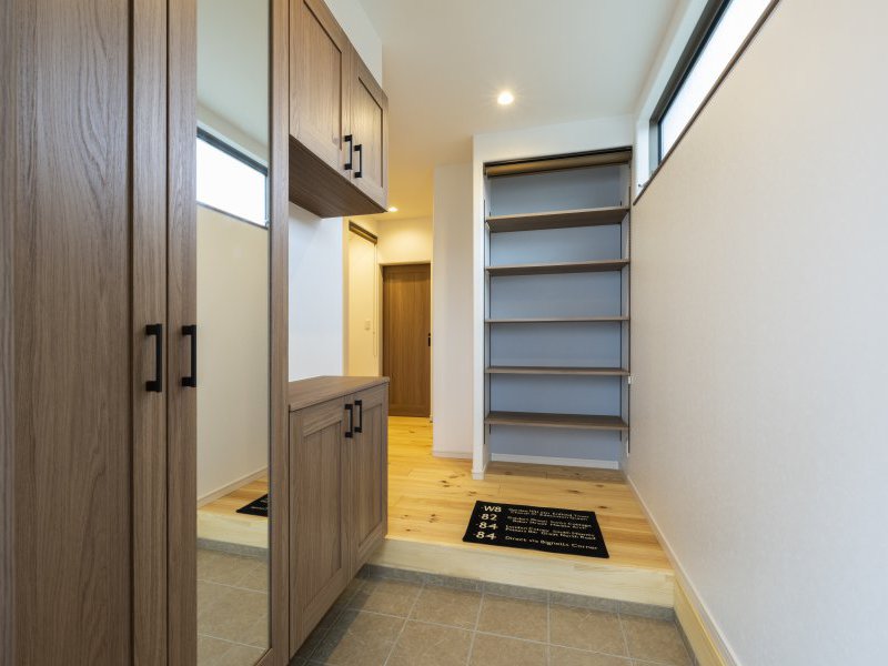 玄関にはしっかりと収納棚を設置し、身支度のしやすい空間に。