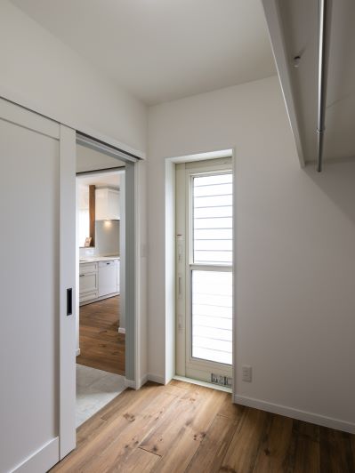 キッチン⇔ランドリー⇔ファミリークローゼットが繋がった合理的な家事動線、