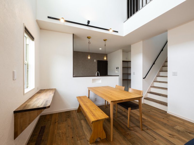 ダイニング上に設けた吹抜けからは、日中はたくさんの自然光を