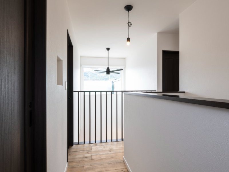 照明、吹抜の手すり等、全てにこだわりを感じる仕上がりに。