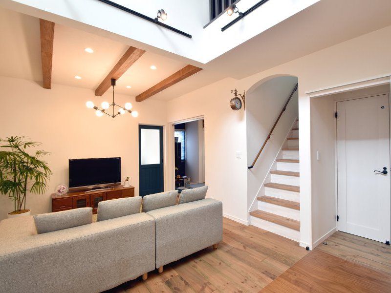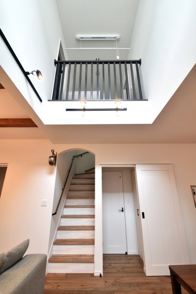 1階と2階を繋ぐ大開口の吹き抜け空間から、