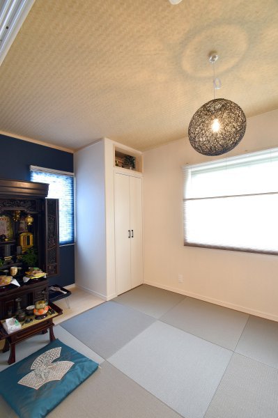 仏壇を置く床にはヒノキを使用し、この和室でお気に入りの椅子に腰かけ、