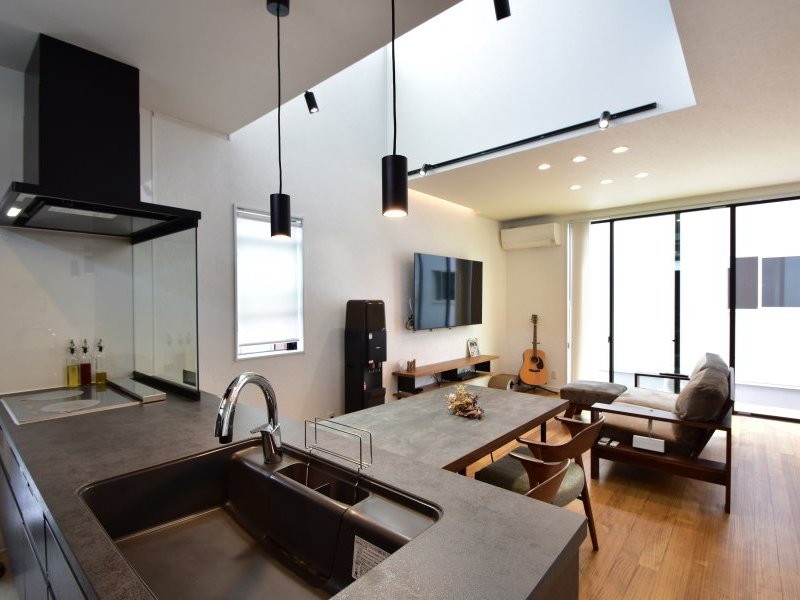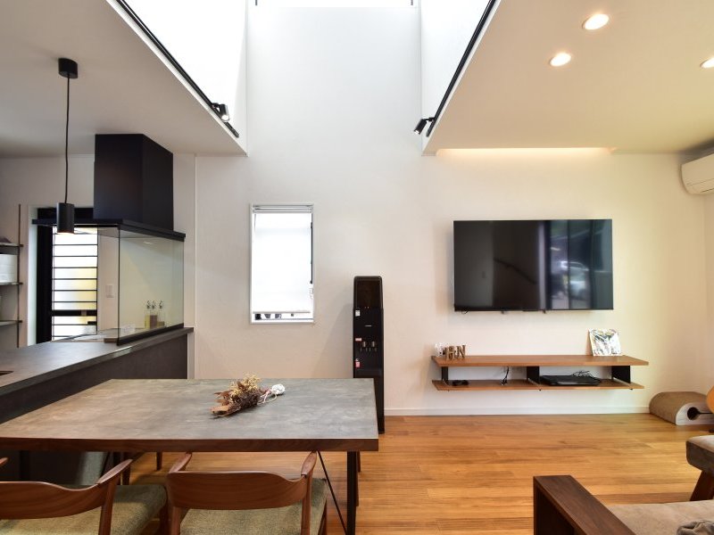 LDKに大きな吹き抜けを設け、南面に大きな窓を設けた。