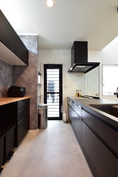 シックにまとめたブラックキッチンと家事ラク動線で日々楽々!