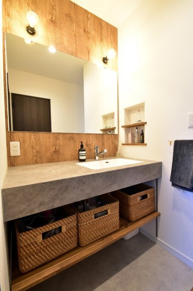 また、木の質感にこだわり朝の準備も広々行える洗面台も!