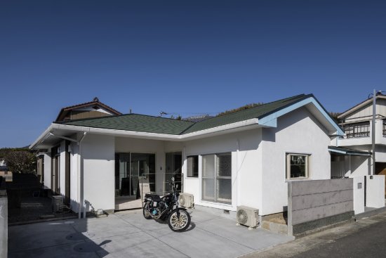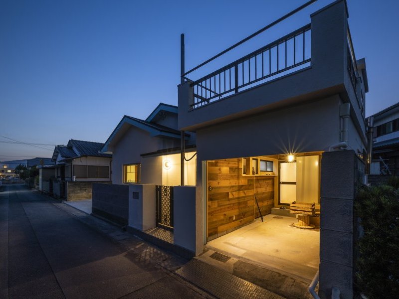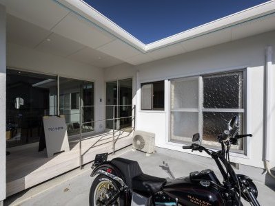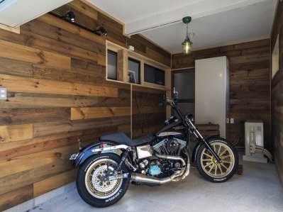 レトロなデザインを楽しむバイクガレージ付きのお家