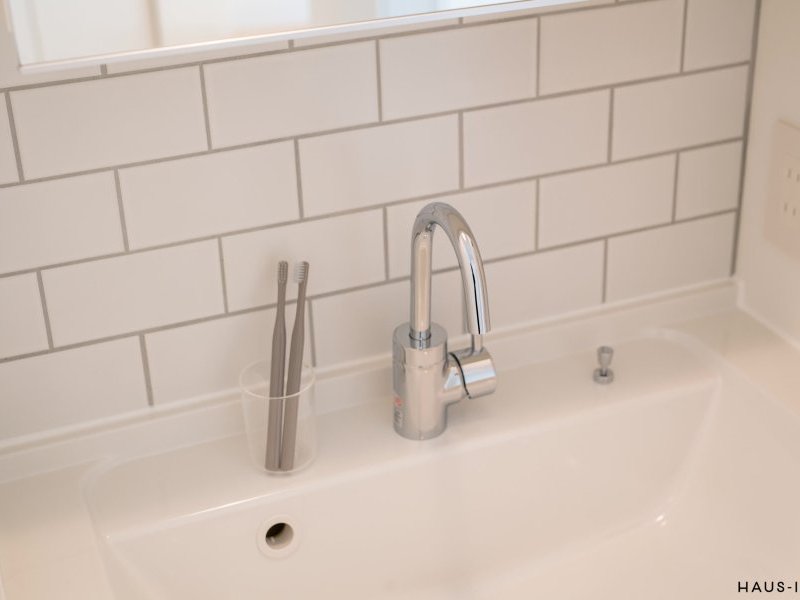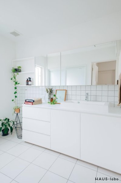 白を基調にタイルや広々したものを洗面台をチョイス。