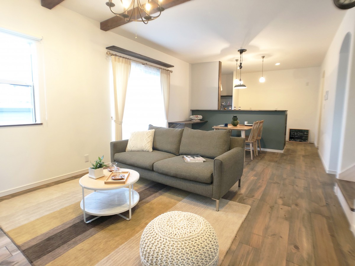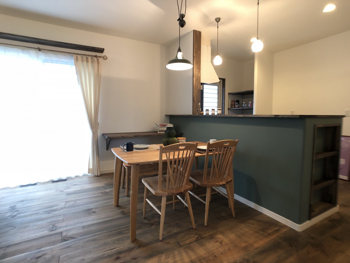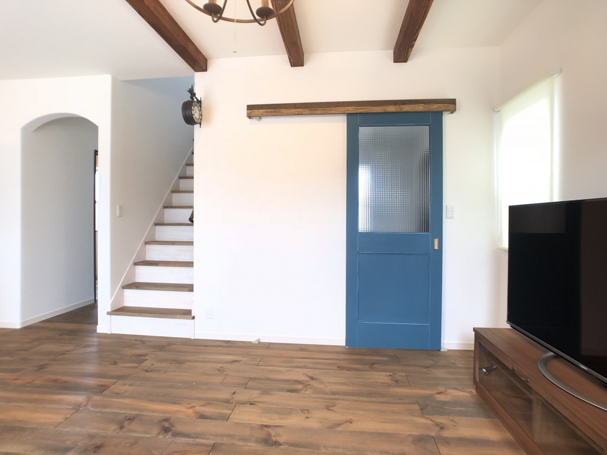 雑誌やインスタグラムのオシャレな投稿を参考に、 写真映えするお家ができました。 1階にも2階にも収納は多めにとり可愛いだけではなく、 すっきりと暮らすための工夫も有ります。 玄関を入ってすぐのインディゴブルーのドアや リビングにある見せ梁等 カフェのような雰囲気にこだわり仕上げました。