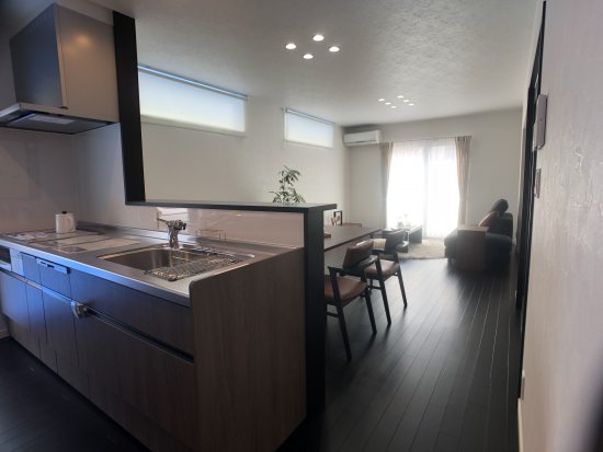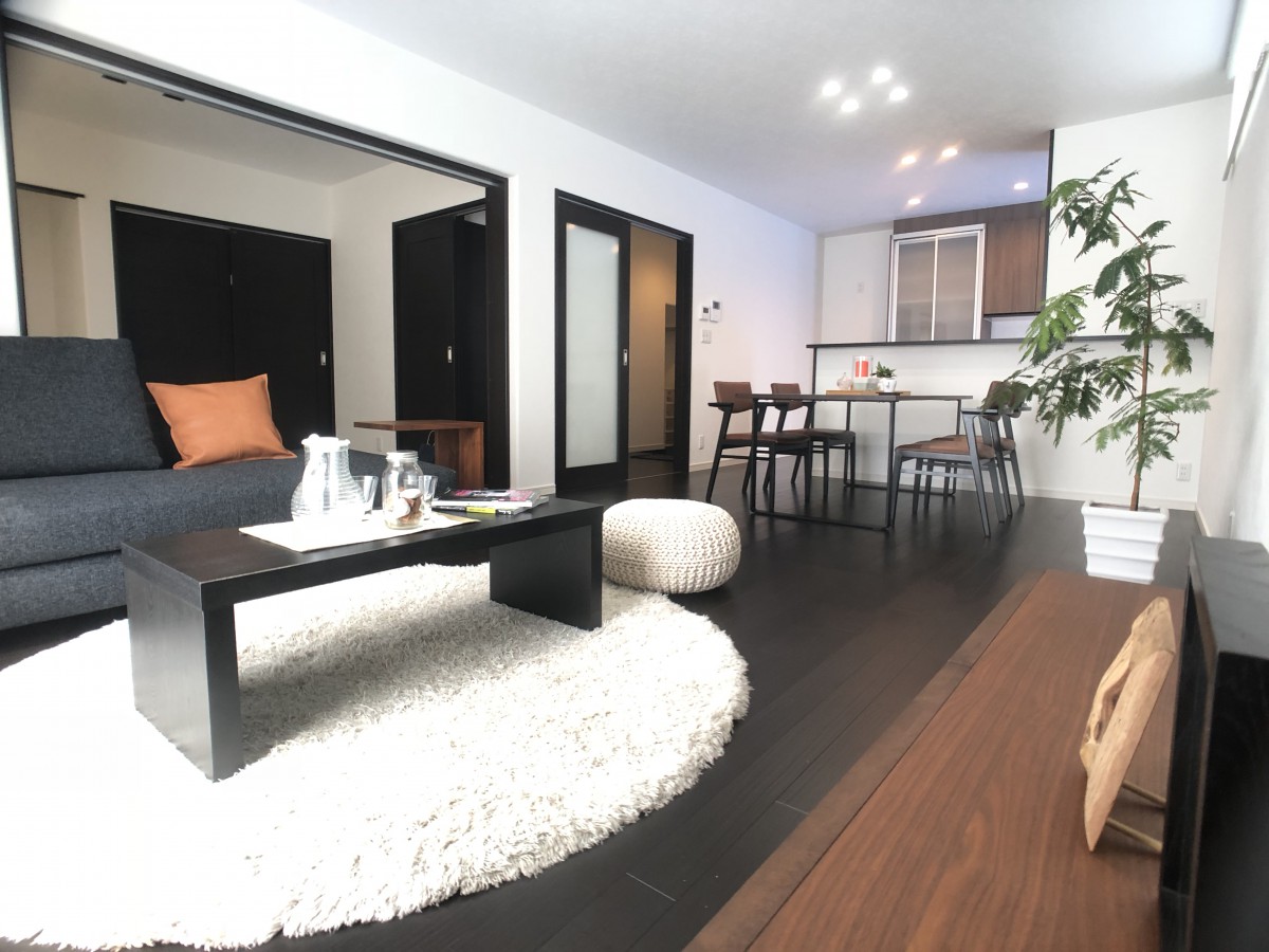 外壁も内装も黒をベースにした、 シンプルでカッコいいお家です。 落ち着いた雰囲気でゆったりとした時間を。 40坪の5LDKとなっており、 広々した空間で過ごせる空間です。