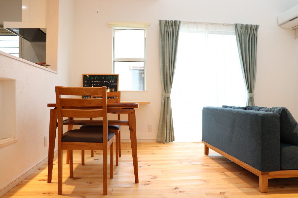 徳島初の2色使いのカラフルママンです。 30坪ママンの家に趣味室をプラス。 黒い外観がアクセントになっています。 ところどころに付けた垂れ壁は、 まるでカフェのよう。 吹き抜けからは、 明るい日差しが差し込みます。
