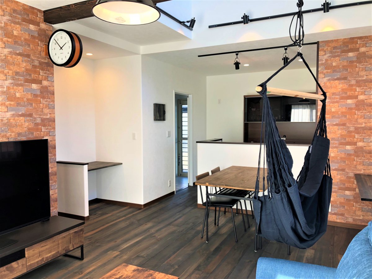 リビングに設置したハンモックでは、