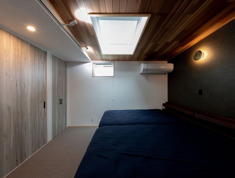 リラックスでき、寝室はシックな落ち着く空間を演出しました