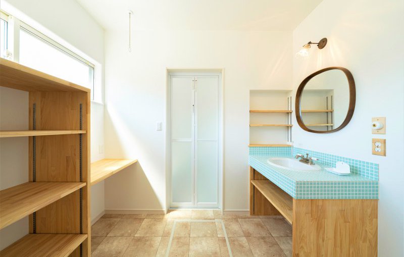 子供でも使いやすい事を重視してトイレに手洗い場を付けたり、雨の日でも洗濯が干せるように囲いテラスにしたり。あとは収納棚も増やしました。