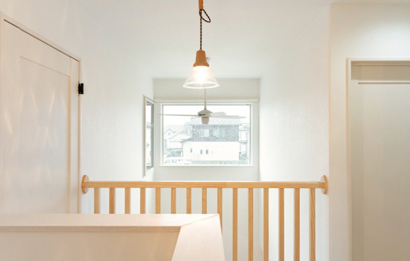 吹抜の手すりも木製の物を選んで、圧迫感を無くしました。