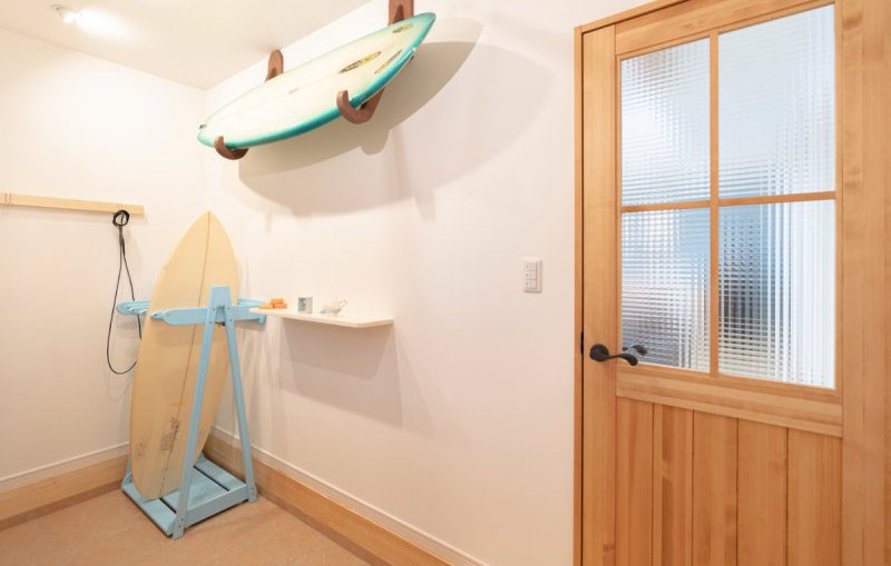 玄関にサーフボードを飾ることが出来るスペースを造りました。